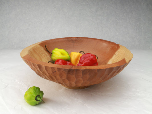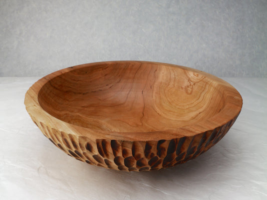 Cherry wood bowl chiseled exterior | Salad bowl | Fruits bowl | Home deco ornament Active