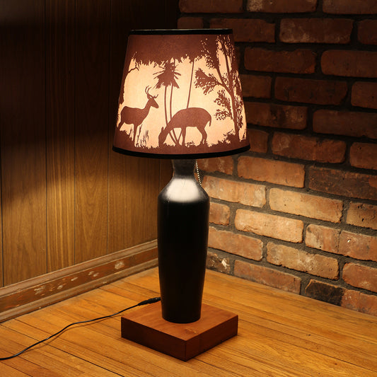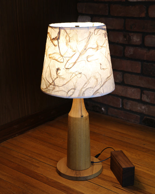 Handcrafted Table Lamp | Rustic Style Cabin Lamp | Oak Wood Turned Lamp Base | DC12V Battery Operation | Original Shade Collection