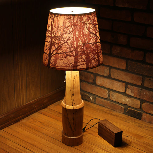 Handcrafted Table Lamp | Spalted Maple Hand Turned Lamp Base | Rustic Cabin Lamp | DC12V Battery Operation | Original Shade Collection