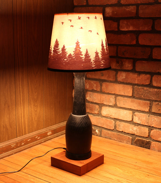 Handcrafted Table Lamp | Wood Turned Lamp Base | Rustic Style Cabin Lamp | DC12V Battery Operation | Original Shade Collection