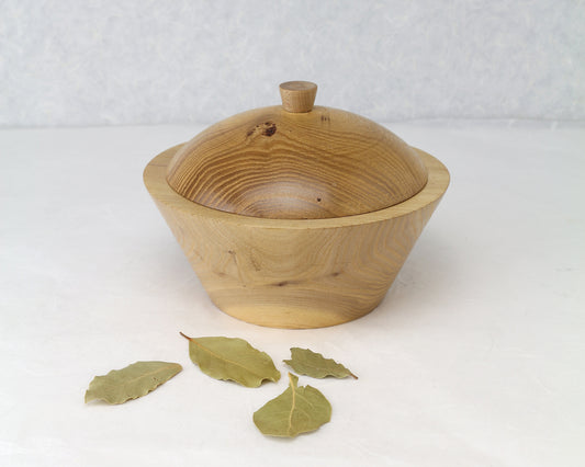 Lidded Bowl | Small Canister | Small Jar | Elm Wood | 6"Diam.x 4" height