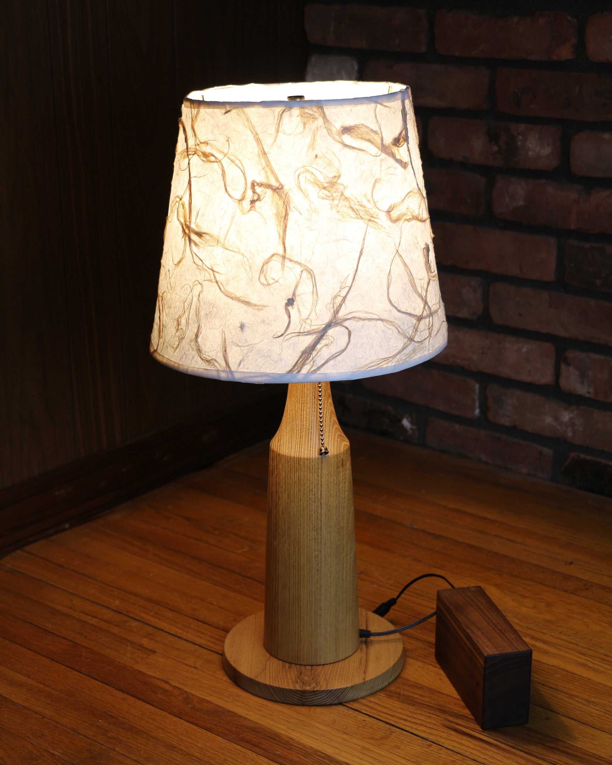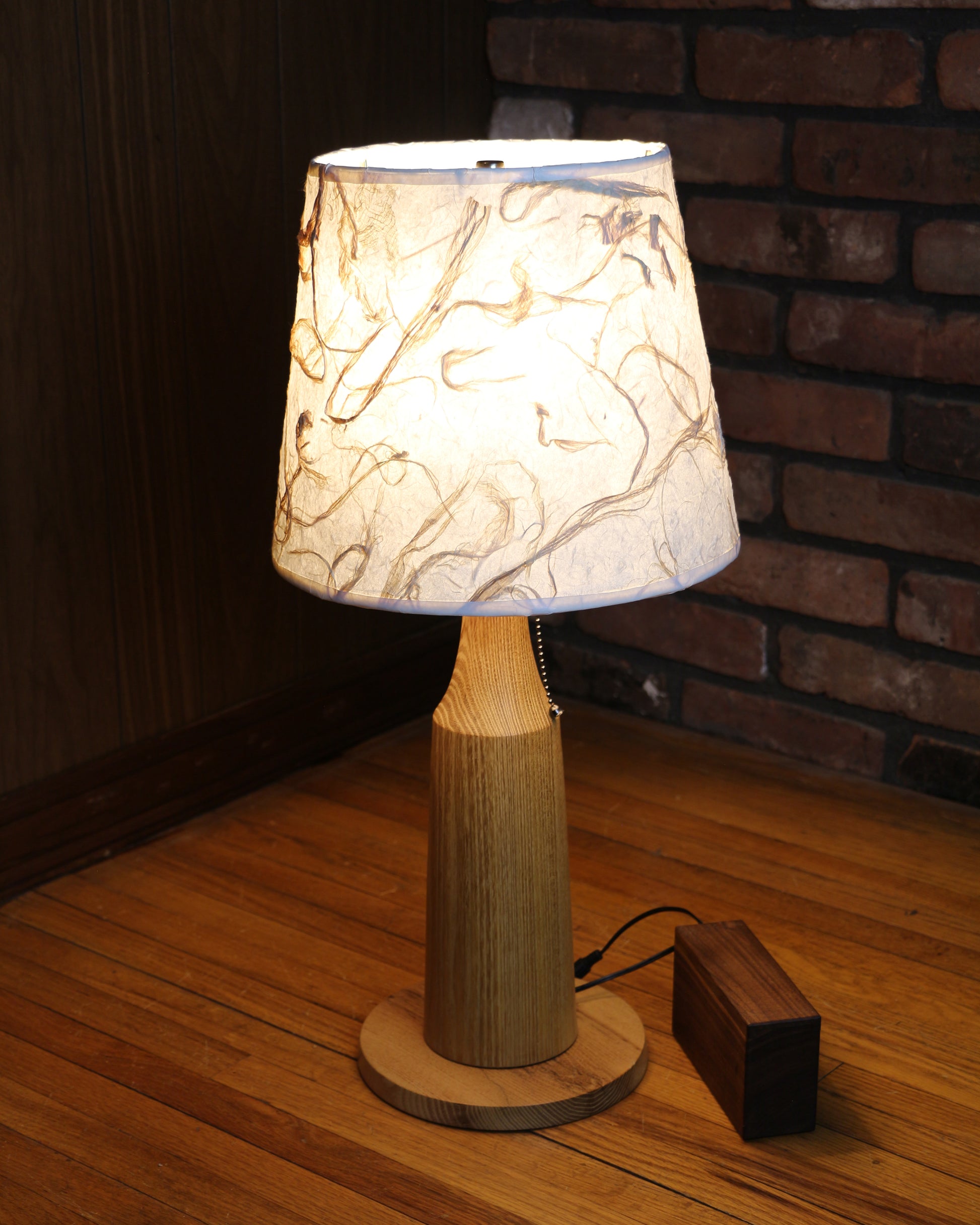 Featuring a one-of-a-kind base that's hand-turned with reclaimed black locust wood, our lamp is a stunning work of art that adds a touch of originality to any space. The DC12V LED bulb on an E27 socket is powered by DC battery operation, providing a warm glow that's both soothing and comforting. Our original design collection offers a variety of handmade paper shade options, allowing you to personalize your lighting to match your unique style.